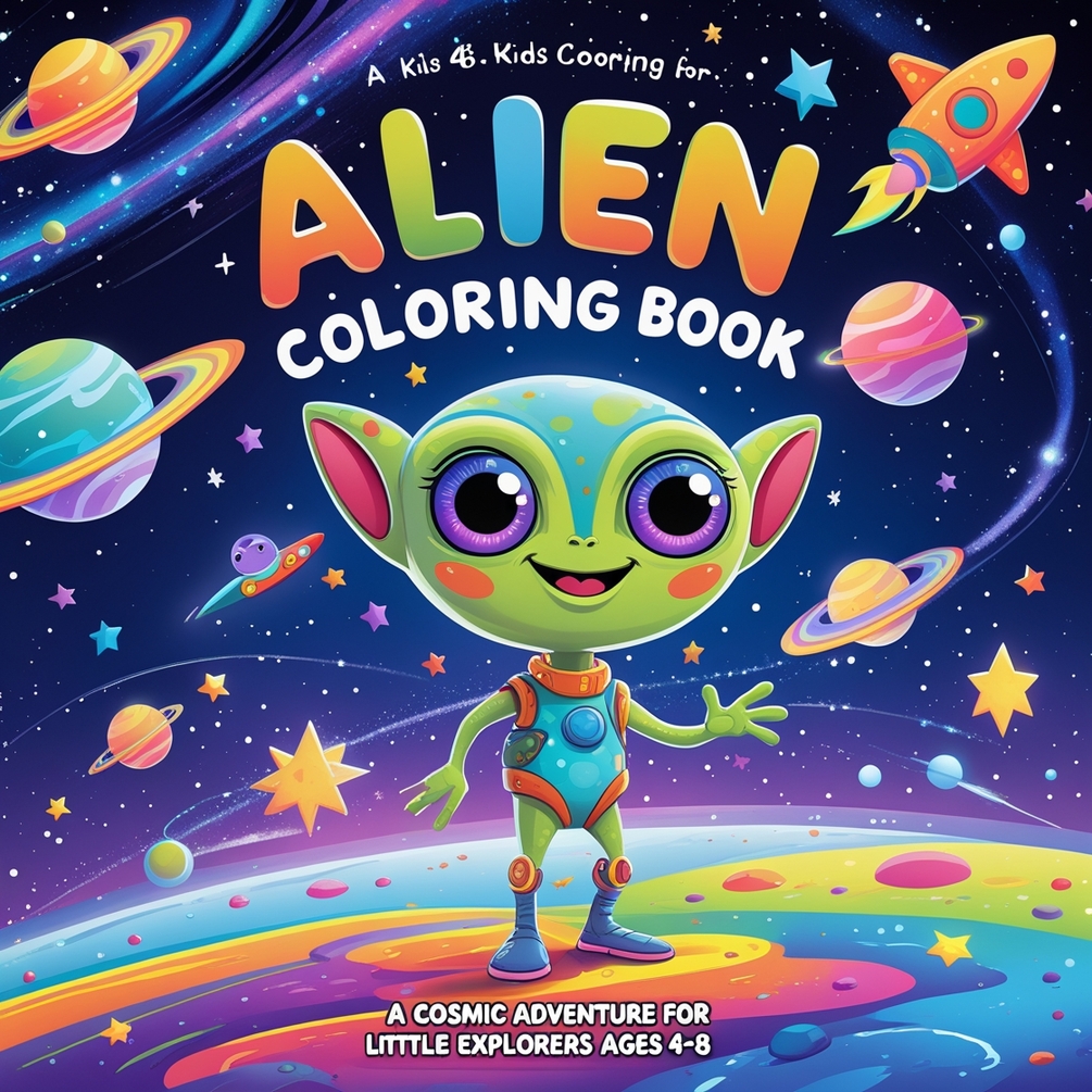 Embark on an out-of-this-world adventure with the "Alien Coloring Book"! Designed for curious kids aged 4-8, this fun-filled 50-page coloring book invites young artists to explore the wonders of outer space. From friendly aliens and colorful planets to whimsical spaceships and mysterious galaxies, each page is packed with imaginative scenes that spark creativity and wonder. Perfect for hours of intergalactic fun, this book encourages children to let their imaginations soar as they bring their favorite extraterrestrial friends to life with their favorite colors. Whether at home or in the classroom, this cosmic coloring journey will keep little hands busy and minds buzzing with excitement! Ideal for kids who dream of stars, planets, and the great beyond. Blast off into a world of color and fun today!